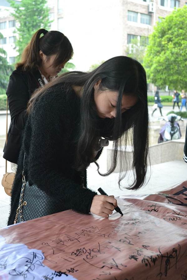 院党委委员、纪委书记夏开堂也来到祈福现场签名。他认为学生记者团举办这次活动是个很好的开端,学院接下来也将组织捐款、捐赠等系列活动,使师生们更加积极关注雅安灾区,奉献爱心。