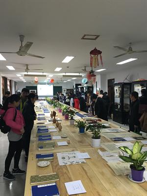 叶涛代表省文化厅非遗处发言。一声“同仁”,拉近了她与这群同样为非遗保护而努力的学员的距离。叶涛说,本期培训班汇集了各个省份的精英,班里卧虎藏龙、高手如林,所以在这次学习成果作品展中不仅看到了字画装裱和古籍修复,也看到了传拓、书画甚至剪纸、陶艺等。叶涛认为,在非遗的几大门类中,书画装裱和古籍修复是一个非常特殊的项目,它在传承中所体现的包容性,对别的门类的集聚性,都是别的项目所不拥有的。传拓、剪纸、陶艺等,都构成了书画装裱、古籍修复项目不可或缺的专业背景。可以说,如果其它的传统手工是为大众生活服务的,那么,书画装裱和古籍修复,其实是用一种手工技艺,来向我们的传统生活、精神生活进行追问。这不是草根文化,而是雅文化,是雅文化当中的精华。非遗传承不易,如何遵循文化部在十三五期间对非遗保护提出的“巩固抢救成果,提升传承水平”要求?叶涛说,这也是非遗传承人群培研计划的初衷:借助院校的力量,来提升传承能力和水平。如何找准定位,如何把握现代审美,如何与市场进行精确对接,这需要在对自身技艺进行要求的同时,思考与现代生活进行联接。她展望多年以后,学员们有的自成一派,有的发展成了我们的民族品牌,有的积累了巨大的社会财富,但他们仍会记得,在2016年,在杭州这个美丽的城市,在浙艺和老师同学的朝夕相处。