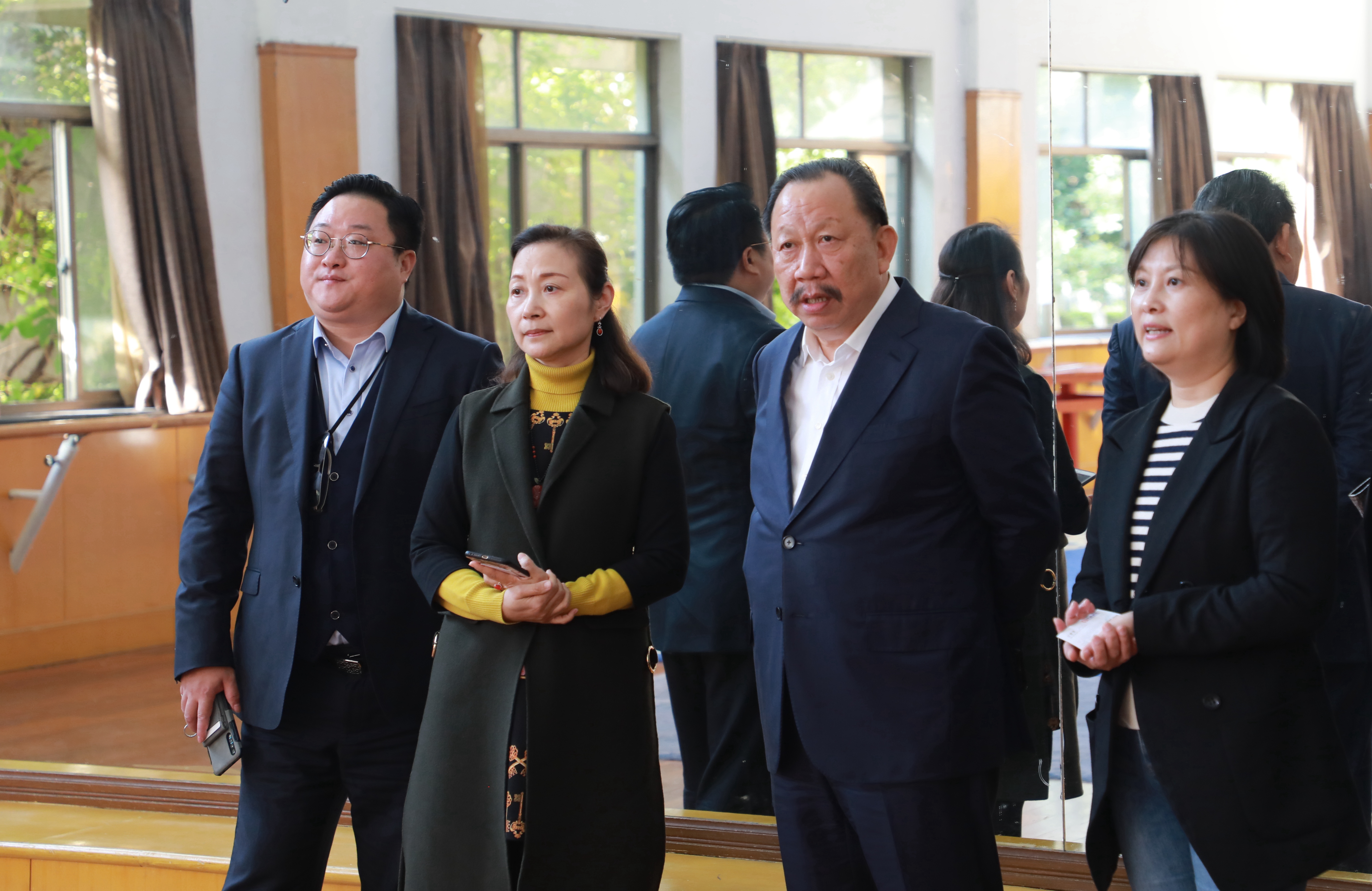 当天下午,吴建荣一行还实地参观了学校戏剧系、音乐系、舞蹈系、美术系、文化管理系,并随堂观摩了越剧基训、影视形体、舞蹈表演、艺术设计、动漫设计、文物修复等课程。