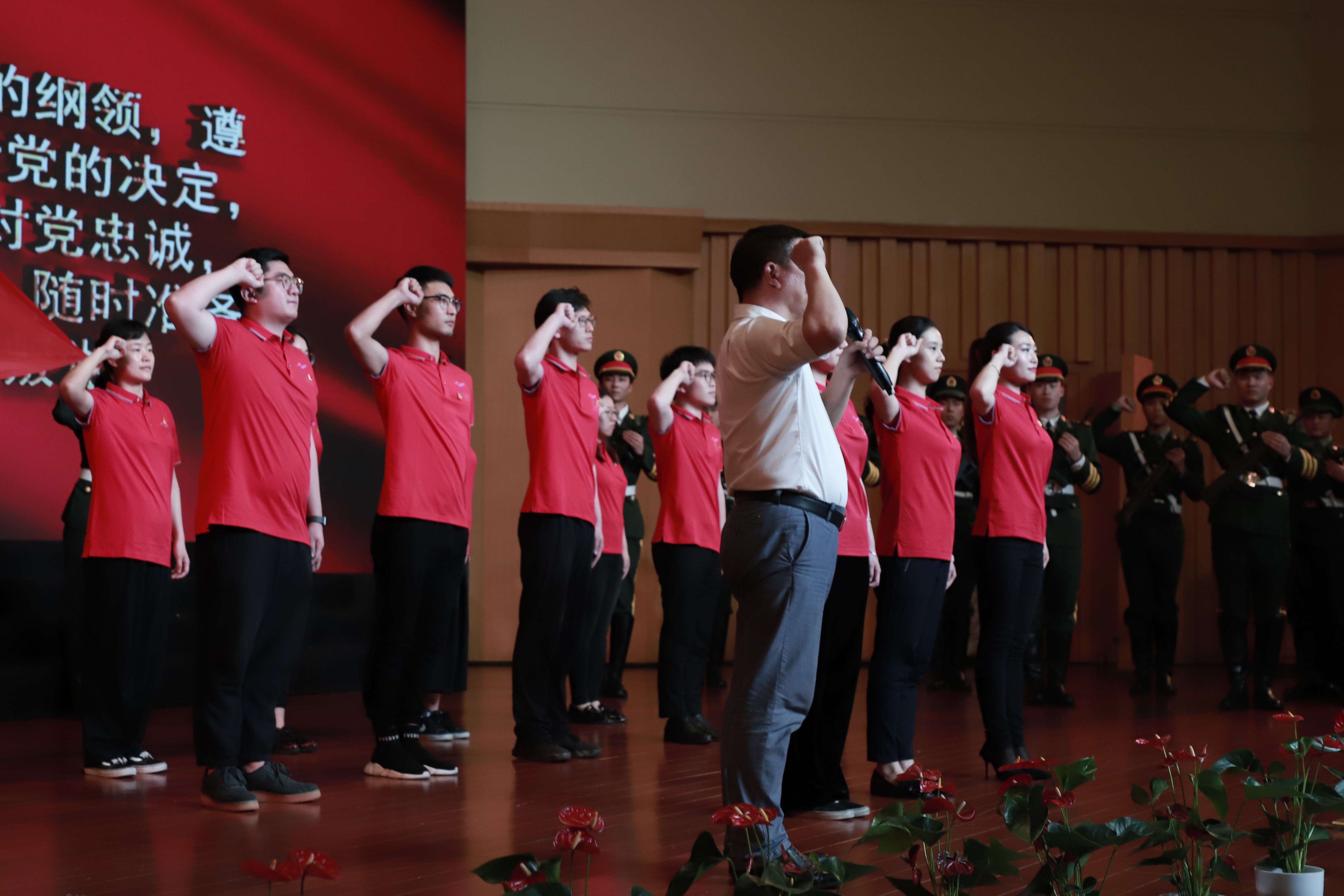 校党委委员、组织部(统战部)部长王涛领誓,带领全体党员重温入党誓词。