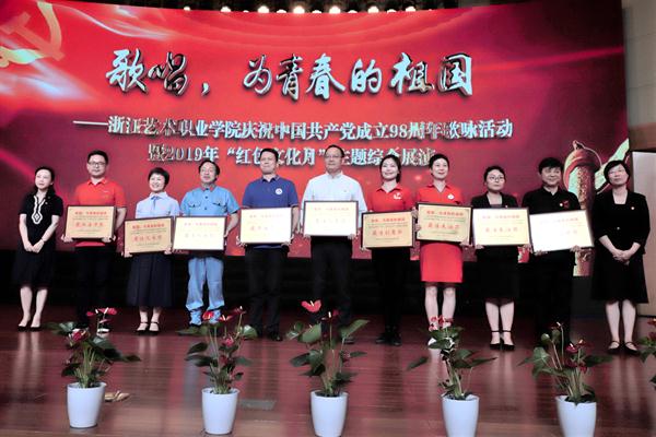 大会对学校先进基层党组织和优秀党员进行表彰。党委副书记夏开堂宣读表彰文件,院长、党委副书记黄杭娟为先进基层党组织颁奖,党委委员、副院长章轲,党委委员、纪委书记徐芳,党委委员、副院长沈军甫,党委委员、副院长支涛为优秀党员颁奖。