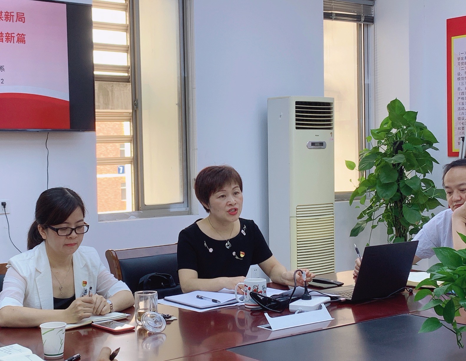 系党总支书记金银琴传达了暑期中层干部读书会和党建思政会会议精神,通报了文管系就业、暑期社会实践情况和创新创业比赛情况。金银琴指出,党建思政工作要结合业务工作开展,融入教育教学全过程,挖掘专业特色,增强党建思政工作与专业建设的融合度。同时,她还对新学期疫情防控、标杆系部和样板支部建设、党风廉政建设自查与整改、“互联网+”党建构建、“文物里的系列故事”活动、劳动教育开展、就业创业指导等进行了具体部署。最后她强调,我们要不忘立德树人初心,扛起肩上的责任与担当,共同谋划,高标准高起点做好文化管理系的各项工作。