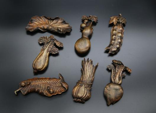 泥金彩漆16件:双龙长提桶、讨奶桶、软掼提桶、圆和盒、马桶、八角果子桶2个、茶叶罐2个、镇纸(一对)、扇面(5把);严海斌的朱金漆木雕作品《福星高照》4幅、童献松的朱金漆木雕龙舟一艘。