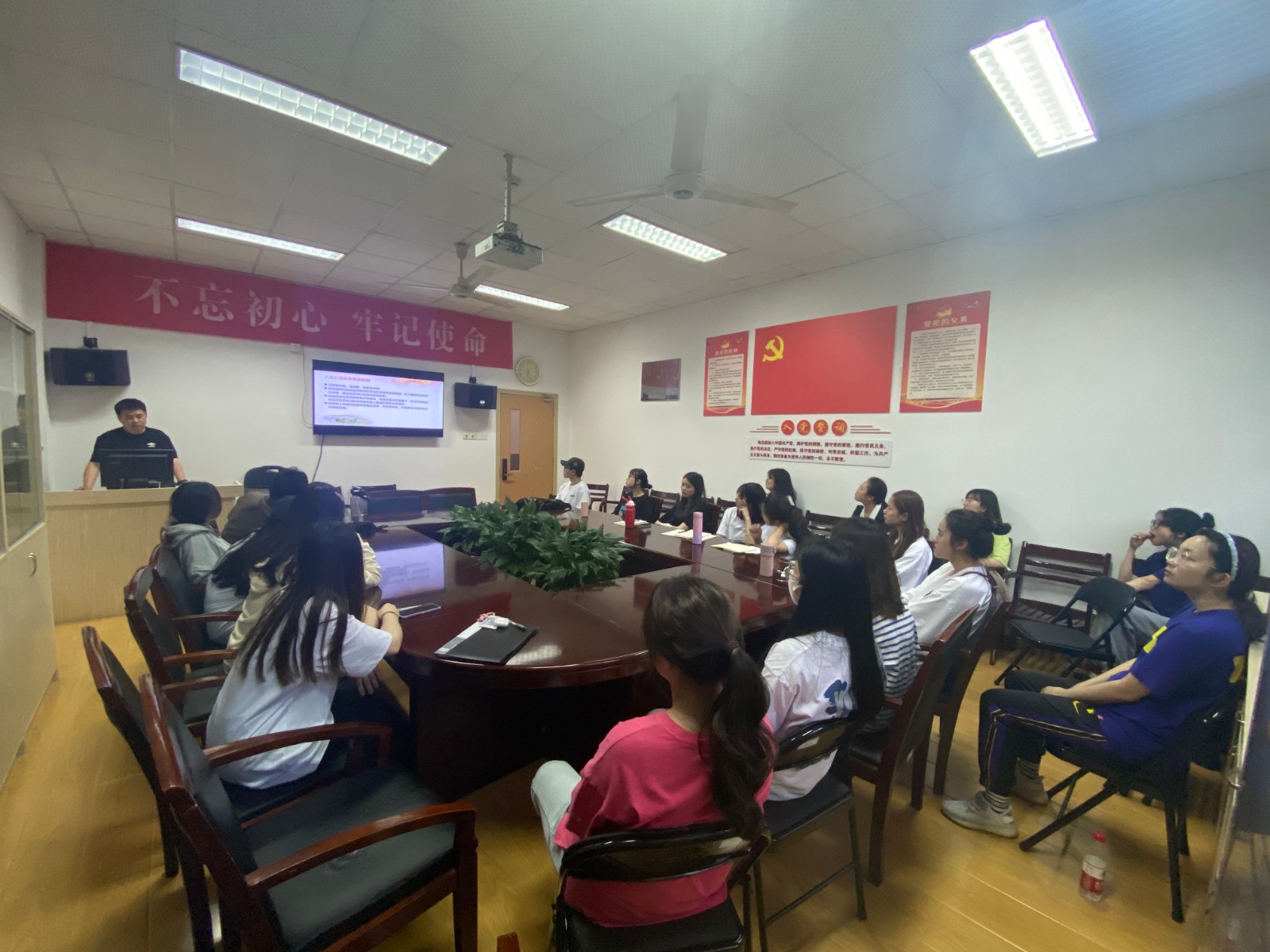 刘梦伟从看党章沿革知党史发展、学党章内容强党员意识、守党章规矩践初心使命等方面展开,通过展示党章中不同的时代主题和指导思想的发展,带大家重新认识党章的权威性、稳定性、历史性,并对党章的地位及作用、党章的成长、意义、内容进行了解读。他认为,党员和入党积极分子在学习党史和党章中,要回顾自己申请入党的初心、入党时的许诺以及面对党旗许下的铮铮誓言,并时刻牢记中国共产党人的初心和使命。他强调,全体党员和入党积极分子要加强学习,让党章作为自身的行动指南和前进方向;要强化纪律,增强“四个意识”,坚定“四个自信”,做到“两个维护”;要甘于奉献,始终牢记入党承诺和誓言,对党、国家、社会做出应有的贡献。2021年是中国共产党成立100周年,100年栉风沐雨、砥砺前行,100年不忘初心、牢记使命,大家要在学习党史中汲取前进的智慧和力量,在学习党章中汲取管党治党的深刻精髓,做一个学习者、遵循者、引领者、奉献者。