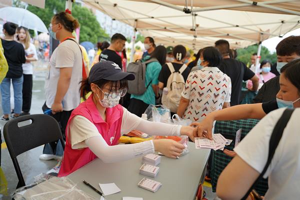在濛濛细雨中,校领导来到报到现场关心慰问新同学并鼓励同学们:希望21届新生们好好利用大学时光,学有所成,学有所用。并且能在大学交到新的朋友,和老师融洽相处,处理好人际关系,度过美好的三年大学时光。
