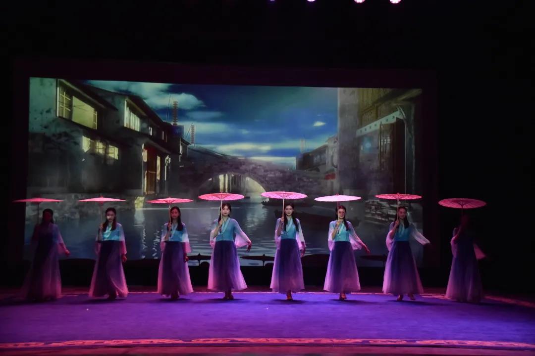 20级表演艺术班的同学们带来的古典群舞《烟雨行舟》用一颦一笑之间展现江南女子的温柔,更是让台下观众们感受到烟雨漫江南的意境美。