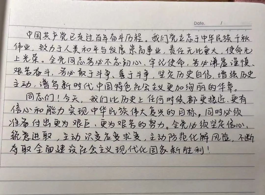 经过初赛的选拔,共有6位选手晋级复赛。选手们通过朗读党的二十大报告原文、手写文稿、提供相应的音频等形式,结合自身对党的二十大报告的体会,交流思想、分享感悟,朗读比赛现场气氛热烈,感染了现场的每一位观众,充分展现了演教学子紧跟时事、爱党爱国的良好风貌。在场的选手们不仅用朗读的方式表达了对党的二十大胜利召开的激动,更是用文字抒发了自己对党和祖国的尊敬与热爱。