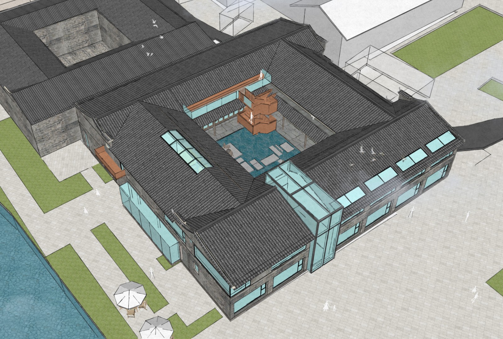 “为此,我们借用道家天人合一的思想观,来表现建筑与周围环境的融合关系。通过打破原有建筑的界面,引景入室。让天光水色,满盈室内,为游客带来天人合一的居住体验。”吉思凡说。