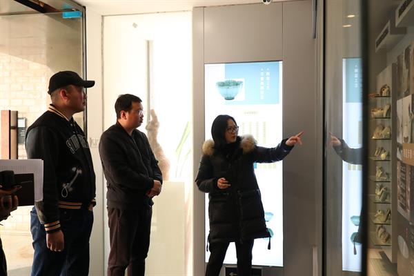 叶峰泉以及各教研室主任相继介绍文物修复、展陈设计、陶瓷工艺、活动创意策划、非遗文创产品设计等建设情况,深入探讨交流,挖掘合作潜力。