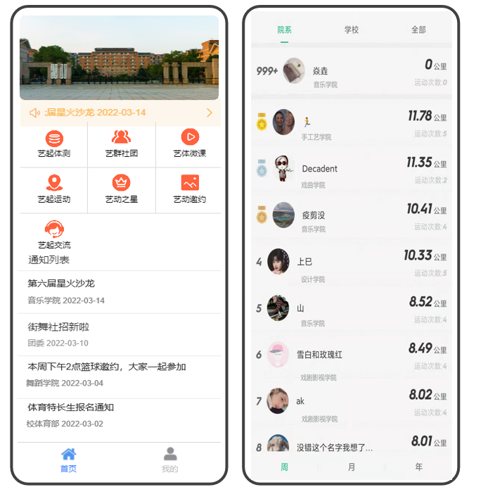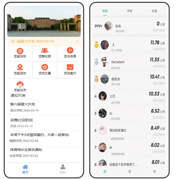我校是第二批高校智慧思政特色应用试点单位,“艺”起运动是高校智慧思政特色应用场景“运动啦·活力在线”的子项目。主要通过数字化手段,结合主流移动互联网技术,引入“步道乐跑”作为课外体育活动开展的工具软件,采用基于定向越野的趣味打卡模式进行跑步锻炼, 同学们可在校园内自主安排时间和场地参与,无需人工组织,锻炼情况将自动生成记录,实现智慧化的运动管理。