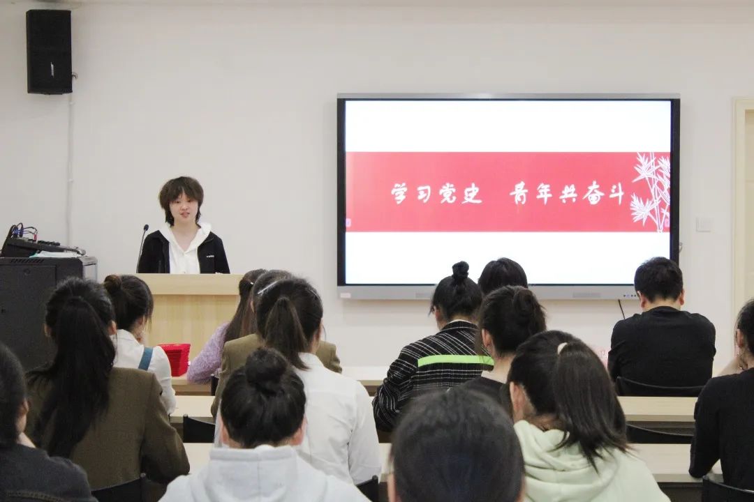 21定向班学生周璐怡,介绍了党为人民谋幸福的历程,身为未来的乡镇文化员,要锤炼本领,奋斗青春。