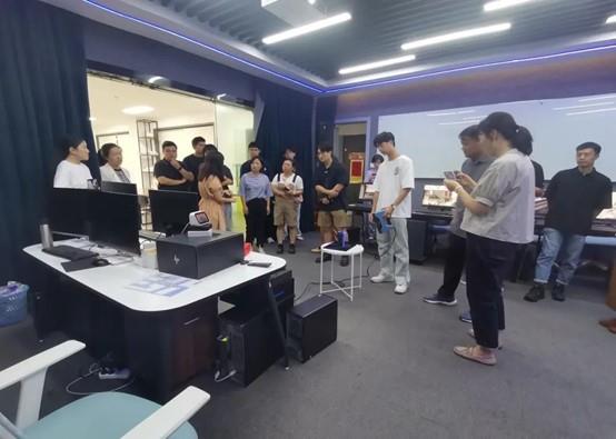 会后,一行人参观了设计学院云设计虚拟仿真数字化工作室及数字实训室,对当前教学中使用的OR物品识别台、全景VR眼镜3D扫描设备进行了体验。在参观过程中,与会人员围绕着专业建设、人才培养、校企合作、课程设置、教学成果等方面进行了深入交流与讨论。