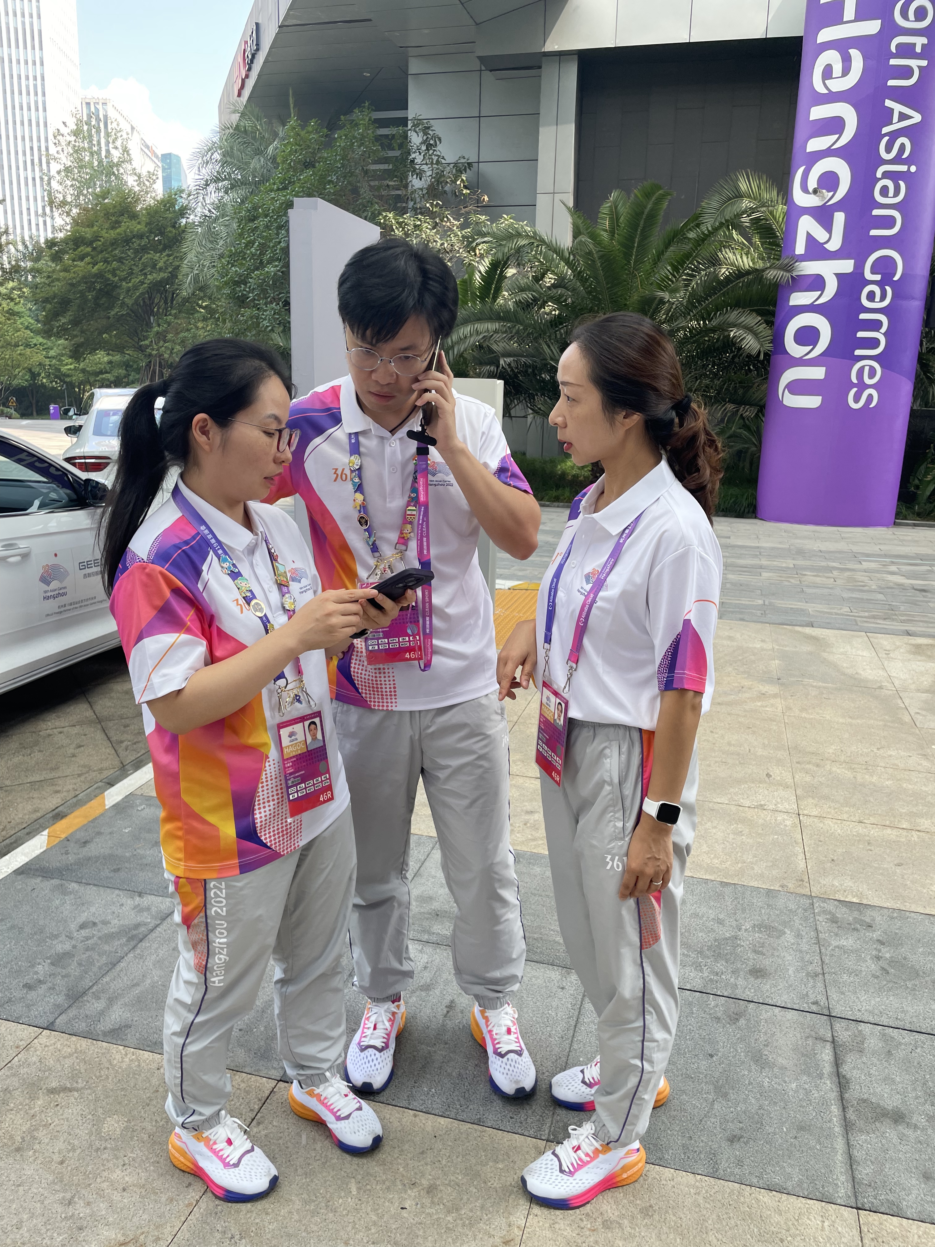 进入亚组委工作,我一直觉得很荣幸。8月18日到岗后,主要进行了两方面的工作:一是相关礼仪的培训,二是承担了WADA(国际反兴奋剂委员会)和CAS(体育仲裁)人员的抵离信息的输入。虽然人数并不多,但是每一位宾客的信息需要从各渠道获得,加上长时间盯着电脑上的表格,眼睛疲劳容易眼花,最后还是回归到最古老的方式:把每一位宾客信息一条条写在本子上,随时可以查看。随着宾客到达的日子临近,生怕自己的录入有误,因此每天上网检查这35位宾客的信息,直至倒背如流才安心。8月22日,我负责的贵宾到达,是国际反兴奋剂委员会的主席秘书,一位谦和、客气的宾客。我负责他在亚运会期间的出行、食宿、观看比赛等安排。主席秘书非常随和,对助理工作完美配合,让我的接待工作快乐且有成就感。亚运服务是一段别样的体验。来自各高校的老师此时都是同一战壕的战友,互相帮助解决突发情况,分享彼此的经验,克服各种困难。与其说是我服务了亚运,不如说是亚运服务给了我广阔的世界, 为杭州,为中国感到自豪!