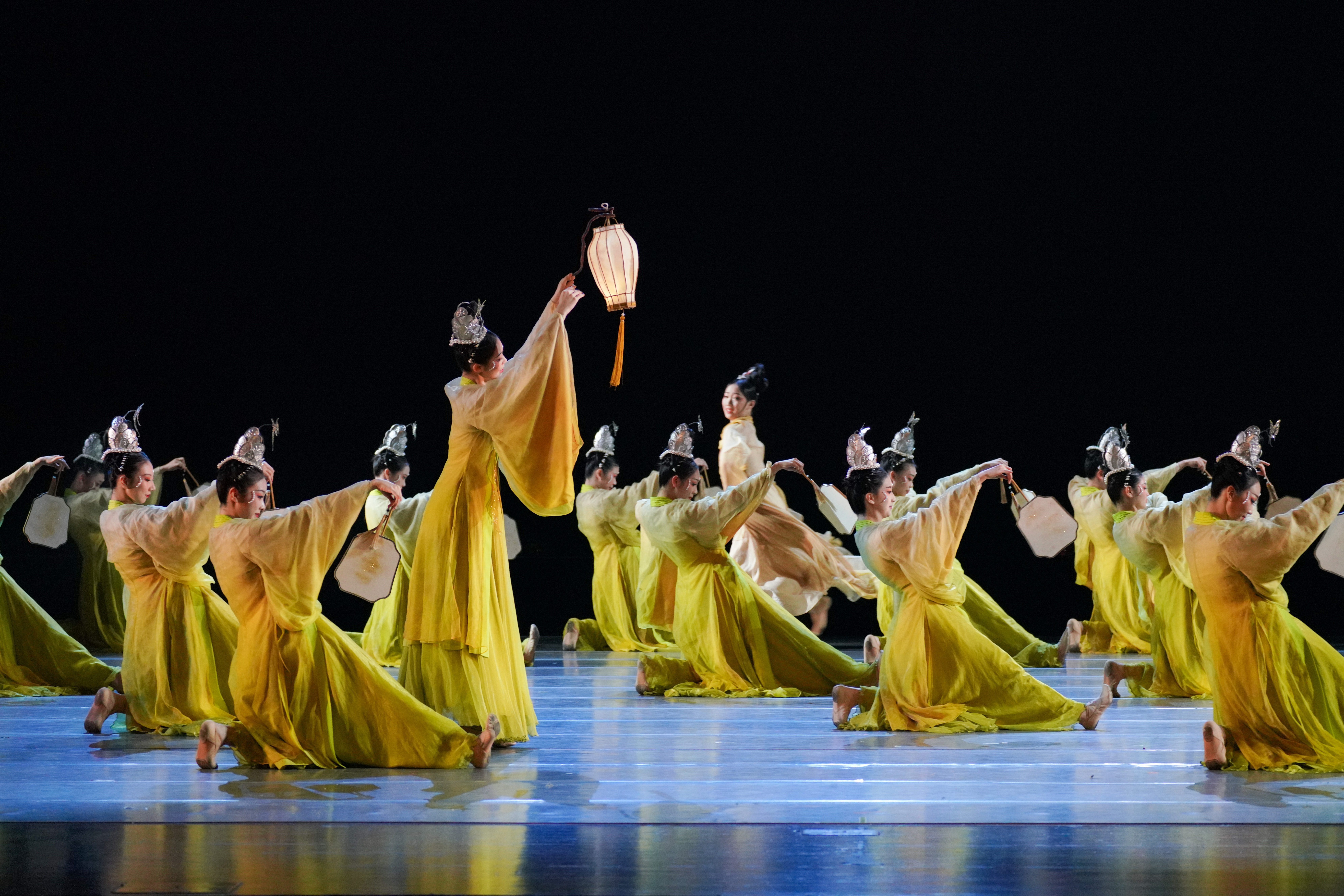 《众里寻他》描绘了金蛾扑冠的少女们,穿过执扇提灯,在千树花开与星河散落中自怜幽独,灯火阑珊,暮然回首他就在身边,原来“灯”即是我们千里追寻的“他”的动人场景。该作品曾入选第十三届“桃李杯”全国青少年舞蹈教育教学成果展演。(编导:李毅源 朱婷 周璐 )