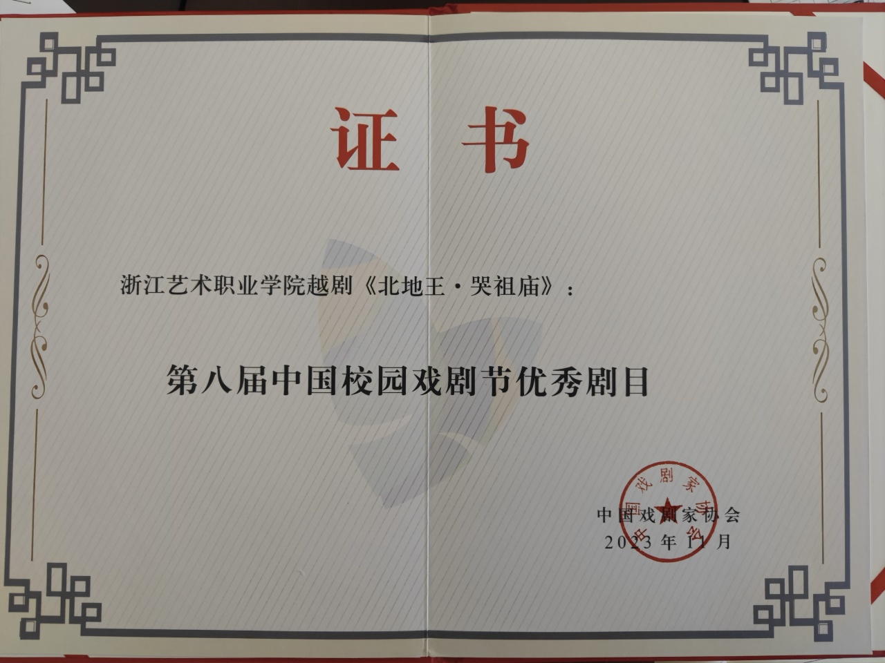 喜报|浙艺戏曲学院越剧《北地王·哭祖庙》荣获第八届中国校园戏剧节“优秀剧目”