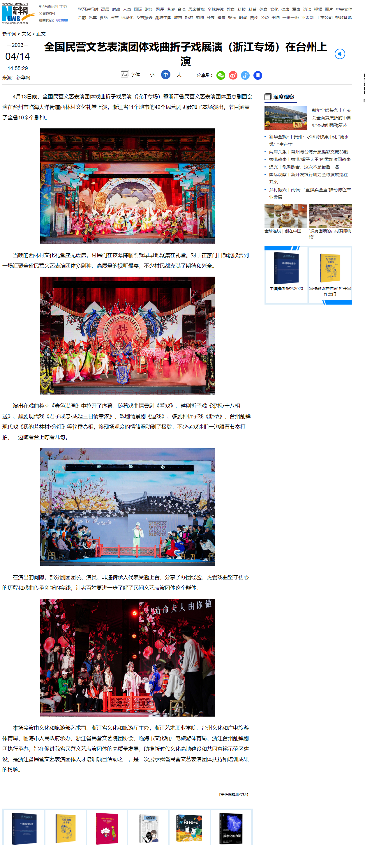 新华网:全国民营文艺表演团体戏曲折子戏展演(浙江专场)在台州上演