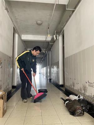 寝室劳动之星:21定向班,立业园8号楼408寝室的两位同学,在打扫完自己寝室的卫生后,发现楼层走廊上由于长期没人打扫积累了许多灰尘。于是,两位同学主动拿上拖把、扫把等打扫工具,将五楼的走廊从头走到尾打扫了一遍。经过两位同学的辛勤劳动,走廊变得干净整洁,他们用自己的劳动为大家创造了良好的寝室公共环境。