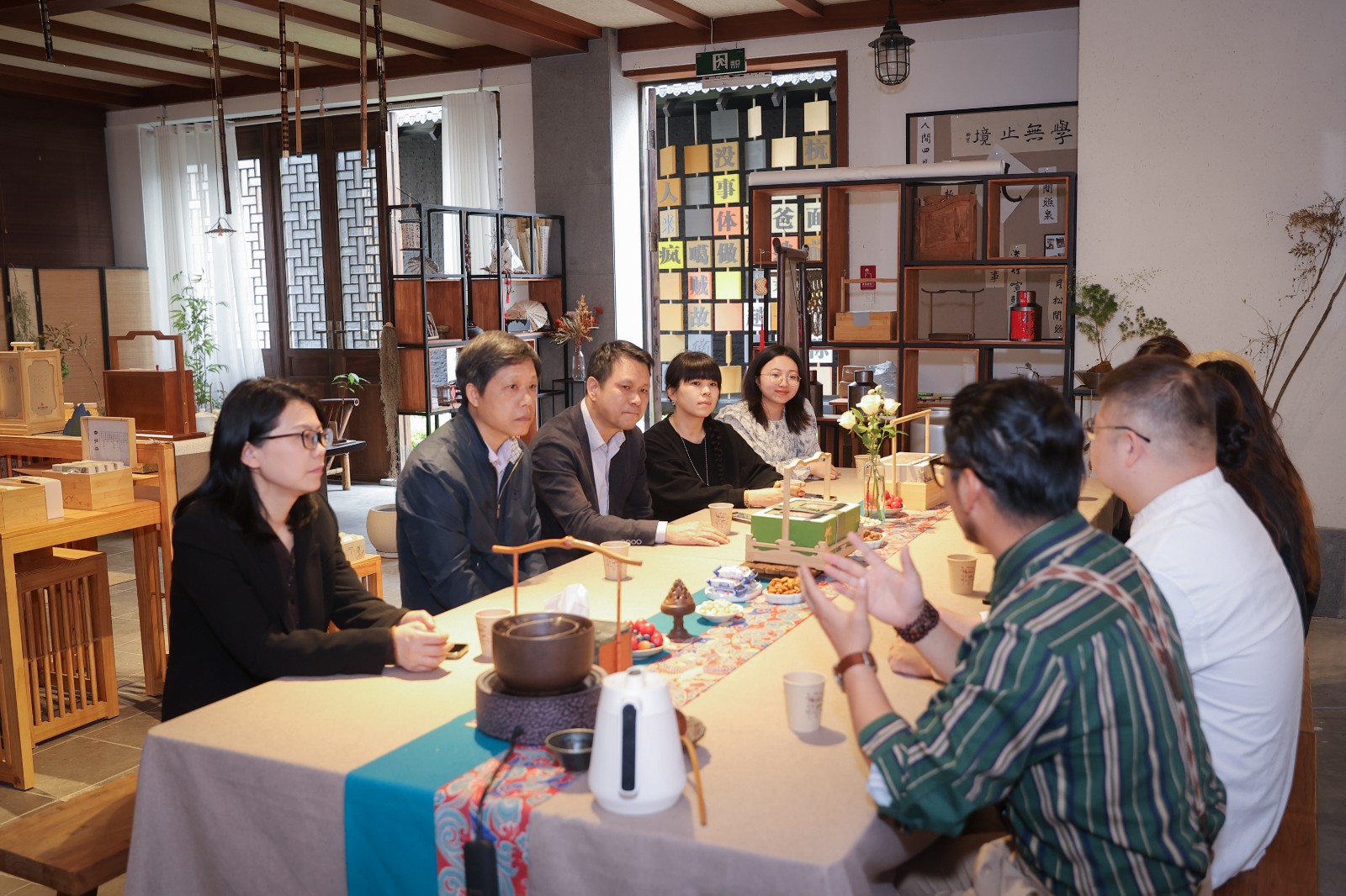 杭州拙尔文化创意有限公司负责人、校友张毅萍和魏昊中热情接待了学校一行,双方进行了座谈交流。