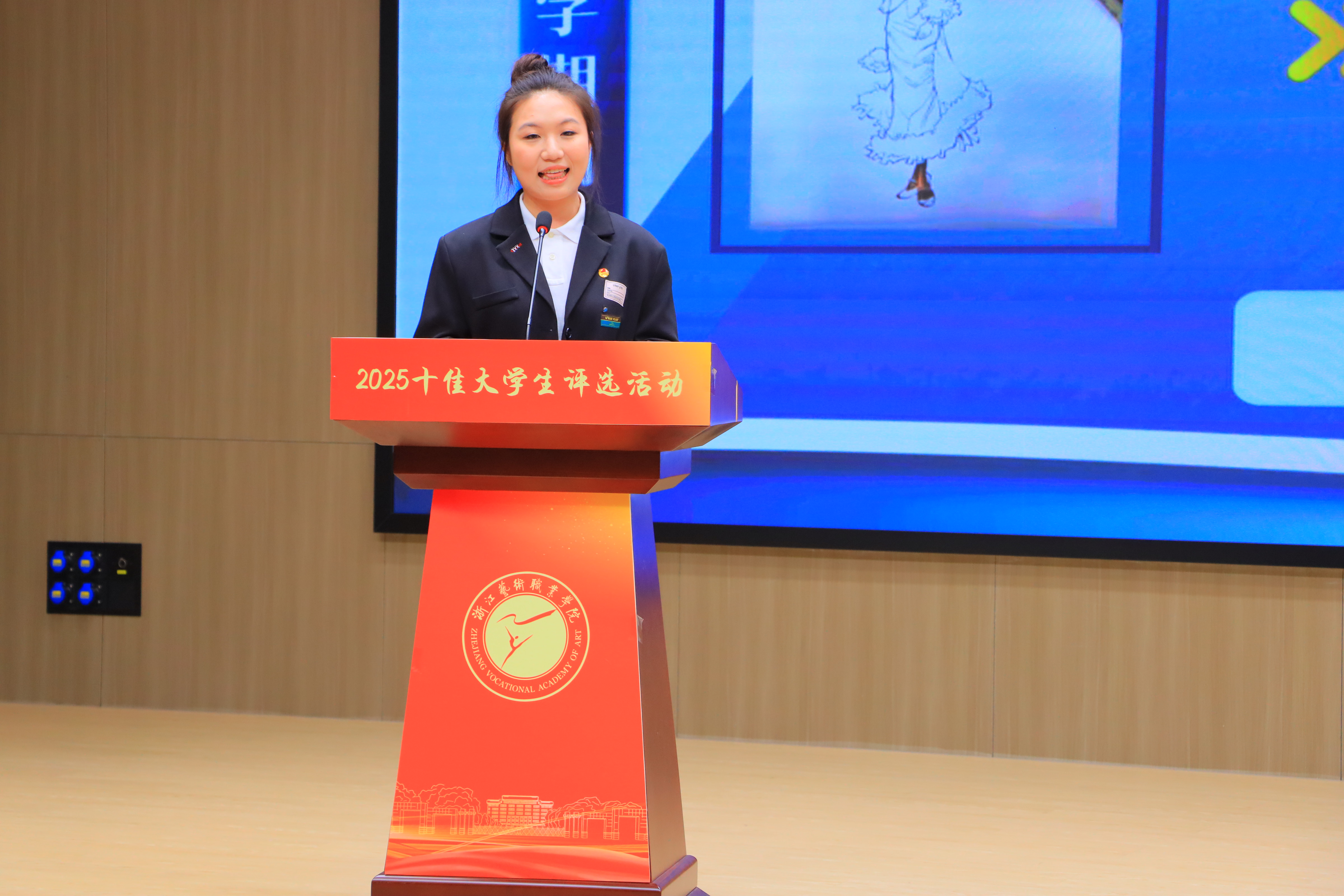 经过前期严格选拔,13位优秀候选人脱颖而出,站上决赛舞台。他们依次登台,自信讲述在校期间在专业学习、艺术实践、技能竞赛、志愿服务等方面的成绩与成长感悟。最终,曹瑞、叶滢滢、赵婕霓、刘宣辰、周俐彤、王添铄、朱晏影、郭以诺、朱含蕾、周海珍获本年度“十佳大学生”。叶雪儿、傅梦娜、何晶获“十佳大学生”入围奖。